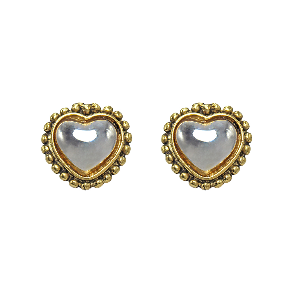 Brinco de pressão em formato de coração prateado com moldura dourada em relevo. Um modelo atemporal e romântico, perfeito para complementar produções do dia a dia ou dar um toque delicado a looks mais elegantes, garantindo conforto e estilo sem a necessidade de furo.