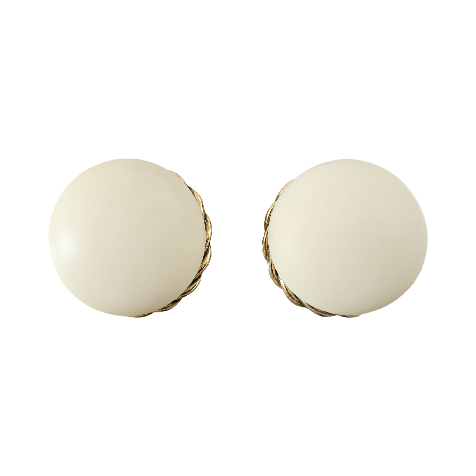 Brinco de pressão em metal no banho ouro vintage, com resina fosca na cor off white e detalhes em metal torcido.