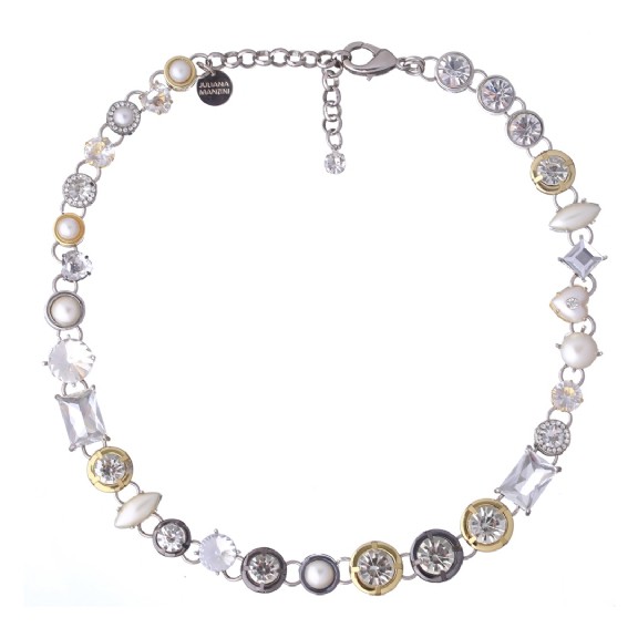 Colar curto mix pérolas e strass (cristal)