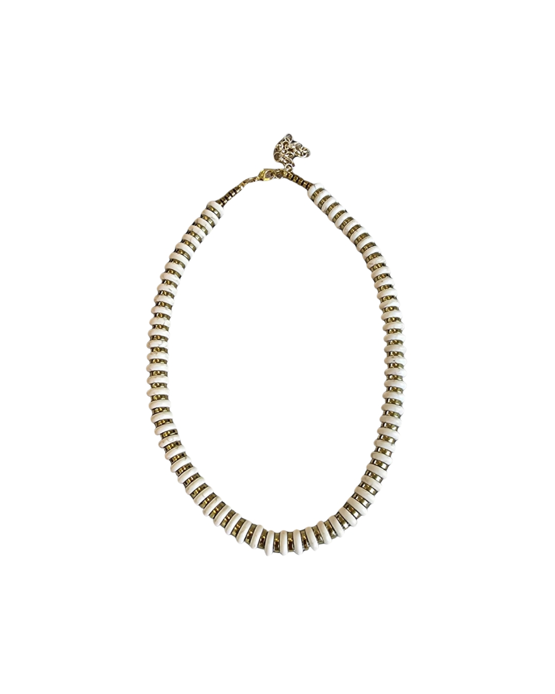 Colar de Pedra Natural em formato de pastilhas e com variação na cor da pedra hematita e pedra howlita . O colar traz uma proposta com energia e muitos significados e ao mesmo tempo delicado. Peça de pedra natural, banhado a ouro com verniz antialérgico. Por ser pedras naturais, podem haver alterações de cor.